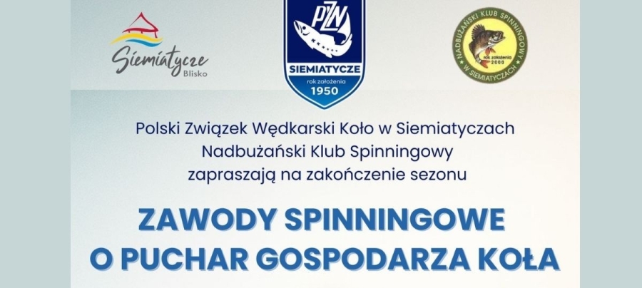 Polski Związek Wędkarski Koło w Siemiatyczach oraz Nadbużański Klub Spinningowy zapraszają wszystkich miłośników wędkarstwa na Zawody Spinningowe o Puchar Gospodarza Koła, które odbędą się 9 listopada 2025 roku (niedziela) nad siemiatyckim zalewem. Wydarzenie będzie jednocześnie oficjalnym zakończeniem sezonu wędkarskiego.