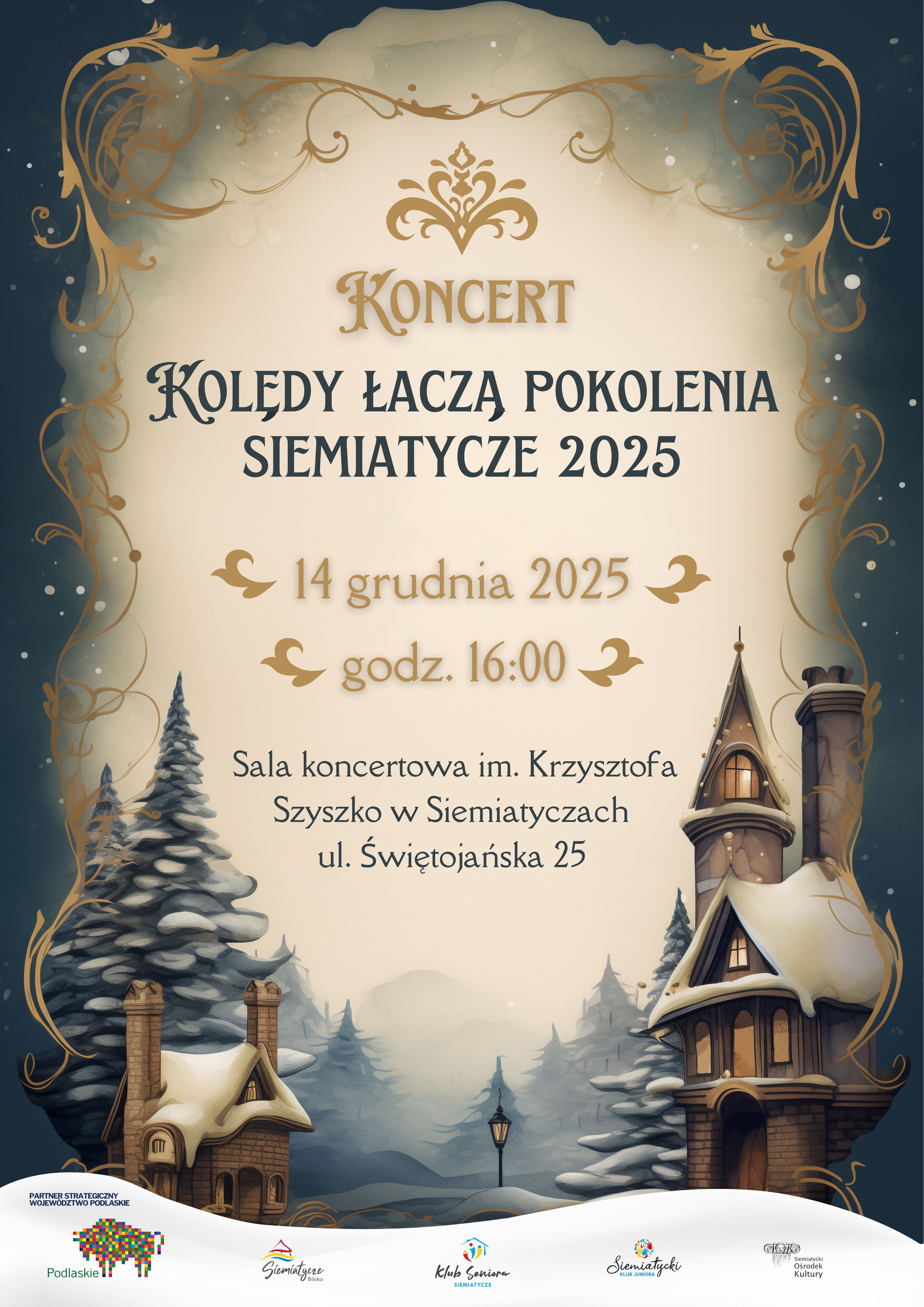 Wydarzenie odbędzie się 14 grudnia 2025 r. o godzinie 16:00 w Sali Koncertowej im. Krzysztofa Szyszko w Siemiatyczach, przy ul. Świętojańskiej 25.