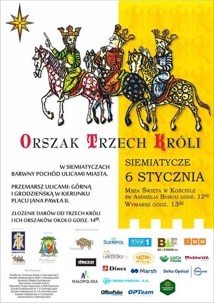 6 stycznia w Siemiatyczach odbędzie się Orszak Trzech Króli – barwny pochód nawiązujący do wielowiekowej tradycji święta Objawienia Pańskiego. Wydarzenie ma charakter otwarty i jest zaproszeniem do wspólnego, rodzinnego przeżywania tego wyjątkowego dnia.