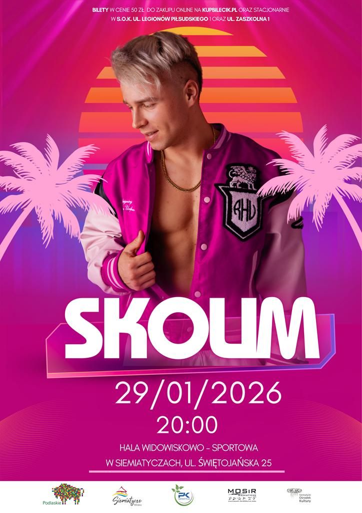 Już 29 stycznia 2026 roku w Siemiatycze wystąpi jeden z najpopularniejszych artystów sceny latino disco w Polsce – Skolim. Koncert odbędzie się w Hali Widowiskowo-Sportowej przy ul. Świętojańskiej 25 i zapowiada się jako jedno z największych muzycznych wydarzeń w mieście w 2026 roku.