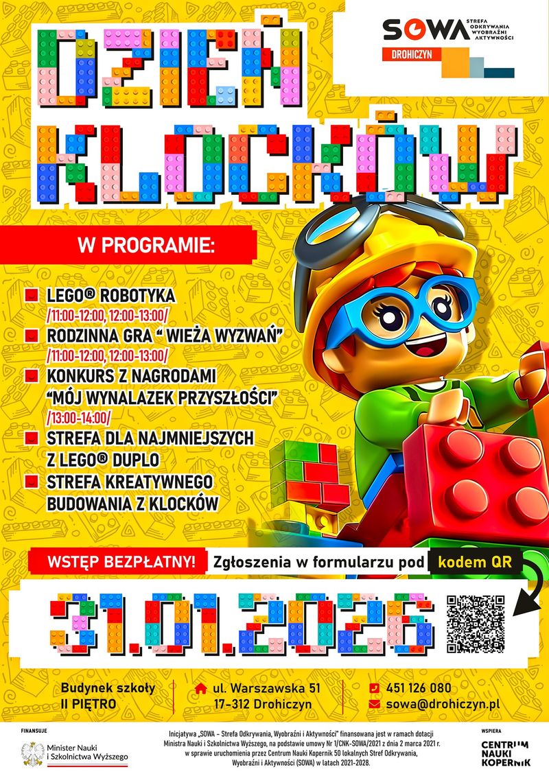 Strefa Odkrywania Wyobraźni i aktywności w Drohiczynie organizuje dla wszystkich miłośników budowania Dzień Klocków. Odbędzie się on w sobotę, 31 stycznia. Na wszystkich odwiedzających czekać będzie mnóstwo kreatywnej zabawy, wyzwań i budowania bez ograniczeń.