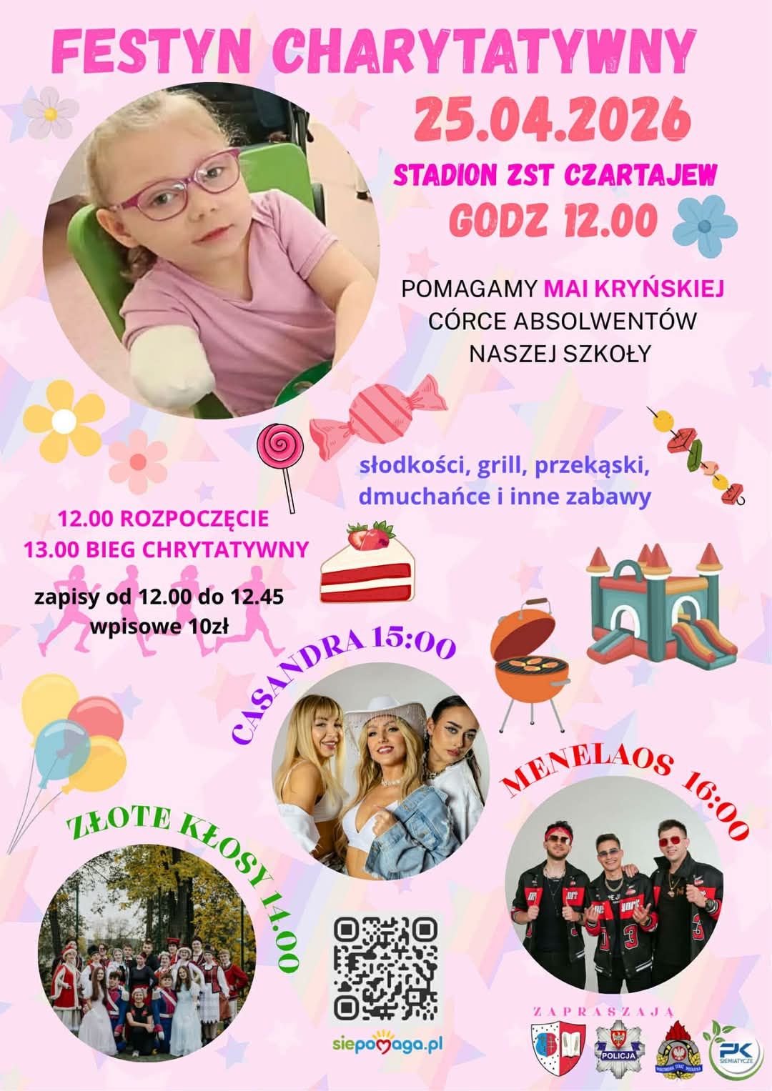 W sobotę, 25 kwietnia w ZST Czartajew odbędzie się festyn charytatywny dla Mai Kryńskiej — małej dziewczynki, która każdego dnia mierzy się z chorobą, wymagającą siły, odwagi i wsparcia wielu ludzi.